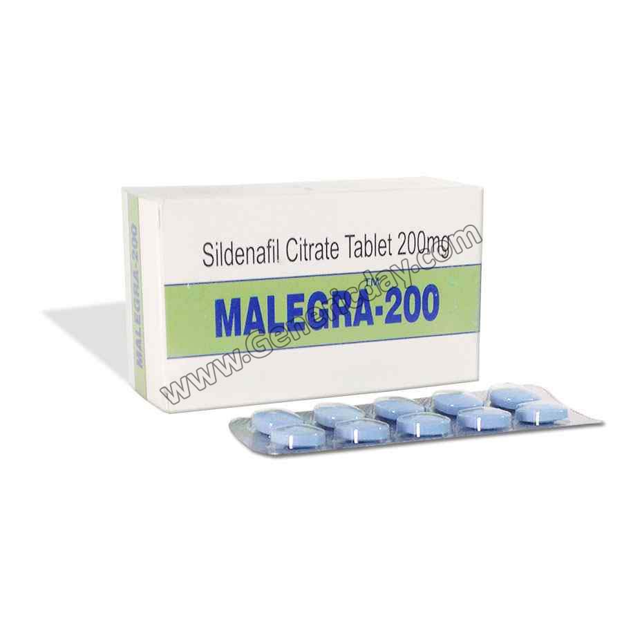 malegra 200 mg contains Sildenafil Citrate as a main active component to helps sexually aroused impotent men for having a stiffer penile that lasts for a longer time for sexual activity. Malegra is a top-quality generic version of Sildenafil Citrate and offers all the benefits of the original manufacture but for much low price. The active ingredient in this medicine is available in several strengths that allow a sexually aroused man to have a stiffer penile that lasts for a longer time of intercourse. Sildenafil 200 mg is recommended for using in moderation for gaining maximum effective results. We also have in stock Cenforce 200 mg (Sildenafil 200 mg) which is used to treat the same indications.